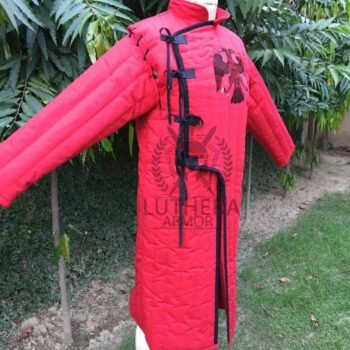 SKU: LAG-143Medieval Gambeson Red Color with Black Trim Double Eagle EmbroideredRated 5.00 out of 5