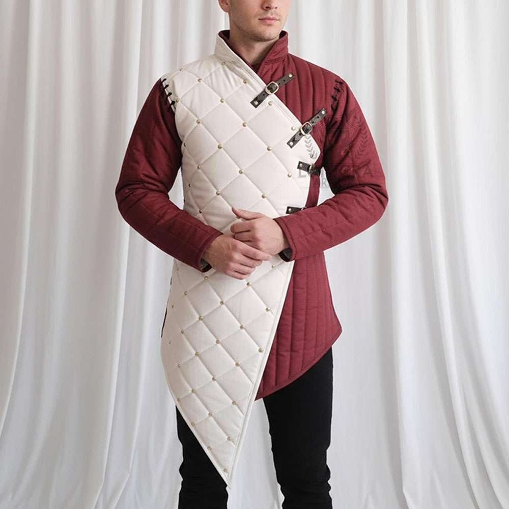 Medieval Gambeson Wine with White Color full Sleeve