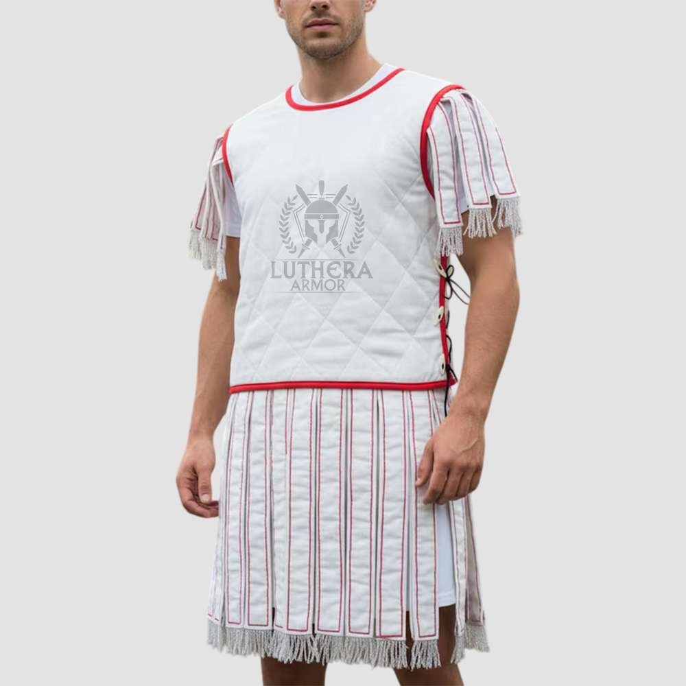 Constructed from thick and robust cotton this Roman Subarmalis will ventilate and breathe better than a poly-fill subarmalis due to its natural cotton internal padding. It laces on both sides to afford it a good amount of flexibility when adjusting to fit and size. The lacing holes are reinforced with grommets.